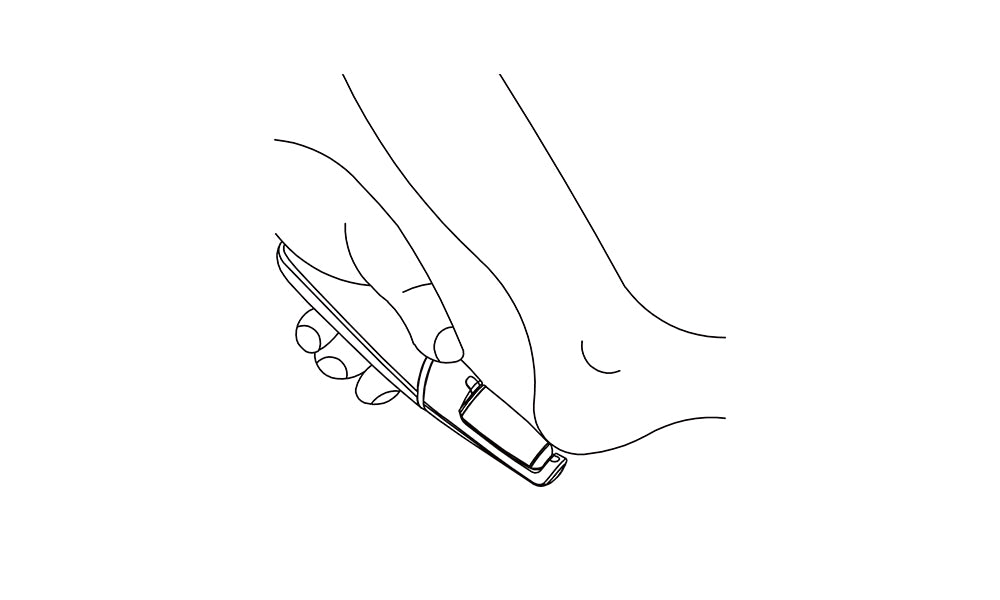 Gently glide the roller, back and forth, side to side over the hard skin. Do not use in the same place for more than 3-4 seconds at a time.
